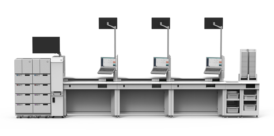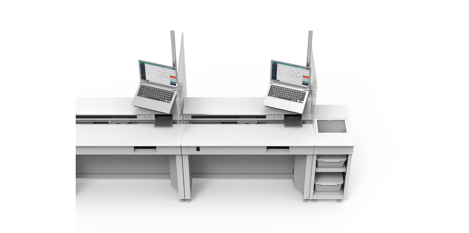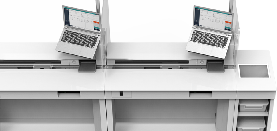 GNT9-TTT(Test Tube Transfer)는 검체 라벨이 부착된 튜브, 환자 확인 라벨을 자동으로 제공하고, 컨베이어를 이용하여 각 채혈 테이블로 TRAY를 이송해주는 테이블 타입의 채혈 자동화 장비입니다.
