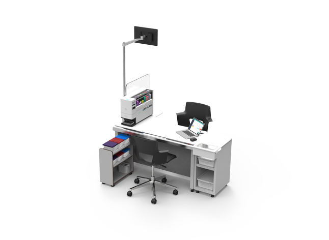 HENm Table은 HENm 전용 테이블로, 임상 병리사의 채혈 업무 효율과 편의성을 높여줍니다. HENm을 사용하여 채혈을 완료한 후, 검체가 담긴 튜브를 지정된 취합 장소로 자동 이송하는 기능을 합니다.